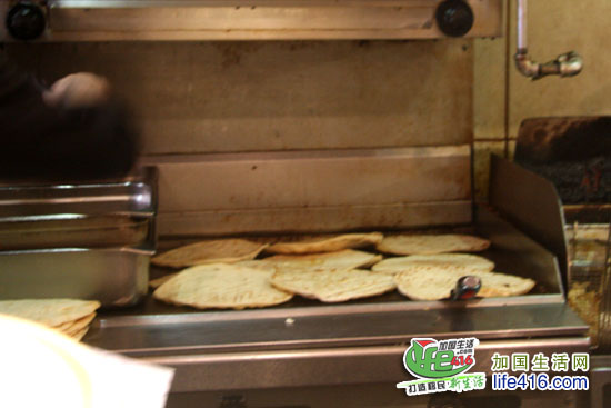 这是包Gyros 烤肉的卷饼,正在炉子上烤着呢。