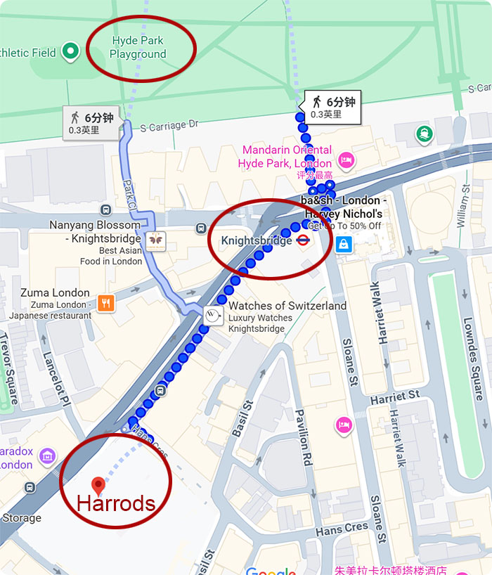 不过,我们在Knightsbridge这一站下车后,倒是没有先去海德公园,而是向相反方面走了5-6分钟,先去英国著名的百货公司哈罗德百货(Harrods)打了个卡