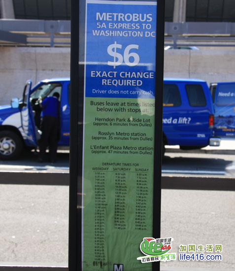 在从多伦多出发前,小编就在网上查到,华盛顿的公交系统特别发达,其中到Dulles机场的公交服务是Metro Bus的其中一条线路5A。乘坐5A公交车的出口是在Curb Level的4号门出口处。