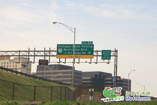 大楼旁的路牌证实了小编的判断:Pentagon South Parking,那幢大楼就是美国国防部五角大楼。