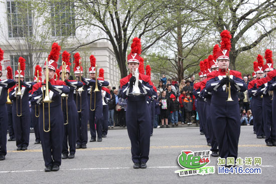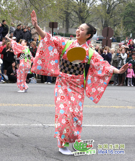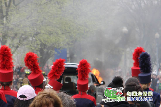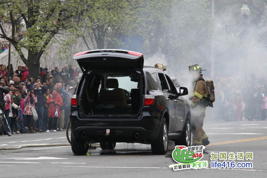 【加国生活网专稿】2011华盛顿樱花节是在3月26日至4月10日举行的,其中4月9日和10日的活动是今年樱花节的Finale Events,最吸引人的当数华盛顿樱花节大游行(National Cherry Blossom Festival Parade)。这本来是件举城欢庆的大活动,然而活动中一辆牵引车的引挚突然发生大火,使游行被迫中断近半个小时。