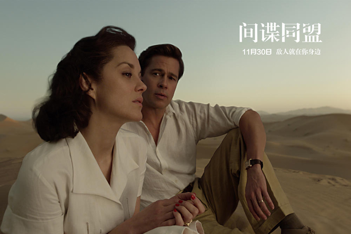由《阿甘正传》导演Robert Zemeckis执导,好莱坞巨星Brad Pitt、奥斯卡影后Marion Cotillard联袂主演的爱情谍战巨制电影《间谍同盟》即将与11月23日登陆中国,除了气势恢宏的战争场面、浪漫复古的时代情怀外,片中两位主演势均力敌的“间谍式互撩”绝对是一大亮点。