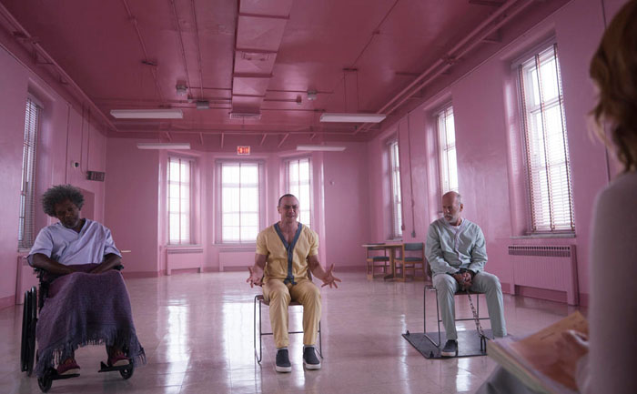 而在去年的《分裂》中,James McAvoy饰演的主人公Kevin患有人格分裂症,最具攻击性的第24重人格“野兽”正在控制他的心灵和肉体,这是一个具有变异超级英雄特征的人格,力大无穷,刀枪不入。按照导演的说法,原本Kevin这个角色也该出现在《不死劫》中,结果却因为种种原因被删掉了。多年之后,Shyamalan以他为主角完成了《分裂》,还在影片结尾让Bruce Willis饰演的David惊艳登场,说出了“玻璃先生”的名字,正式将这三个角色、三部电影联系在了一起,构建起了所谓的“Shyamalan超级英雄世界”。
