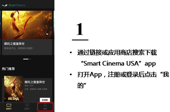 1、请点击:https://go.onelnk.com/kxAY/d2de1394 链接下载“Smart Cinema USA”手机App