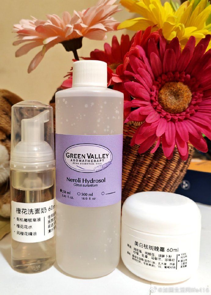 橙花系列美白祛斑,包括橙花洗面奶、橙花花水、美白祛斑晚霜