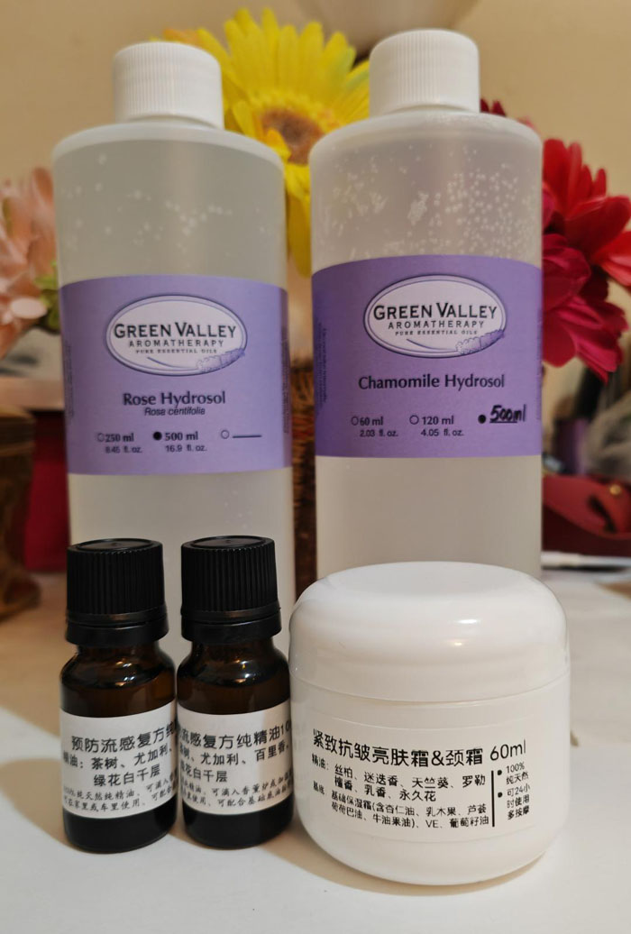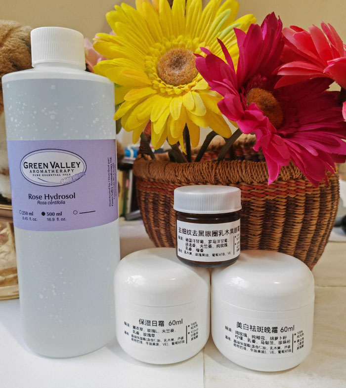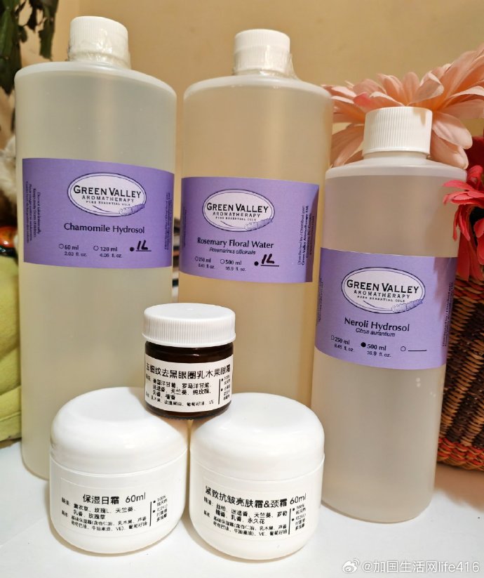 下图基础保湿霜可以配各种面霜,下两图玫瑰花水和橙花花水都是订量最大的花水