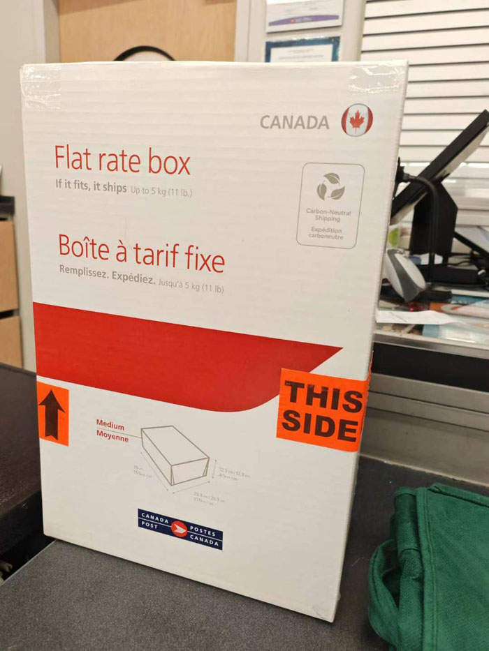 小编又第一时间赶在Canada post罢工之前把需要寄给大家的货寄出,这种flat rate box在5公斤以内加拿大境内邮寄同一个价格,适合订花水的邮寄。这个箱子是Medium大小,$24.99加税。如果是以前,小编寄将近3公斤货到温哥华,怎么也要$40左右,现在就是$24.99加税,是不是便宜许多。就是吧,Canada post开始罢工了,晕……