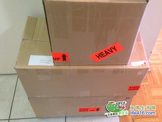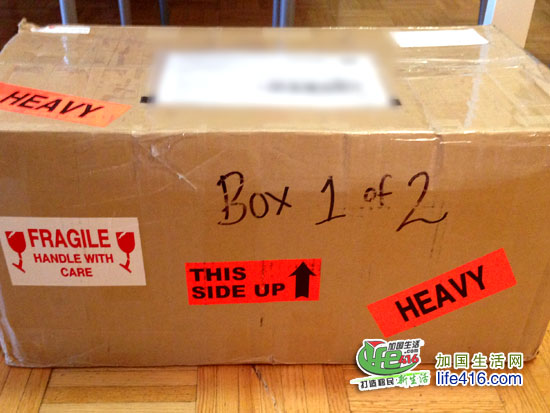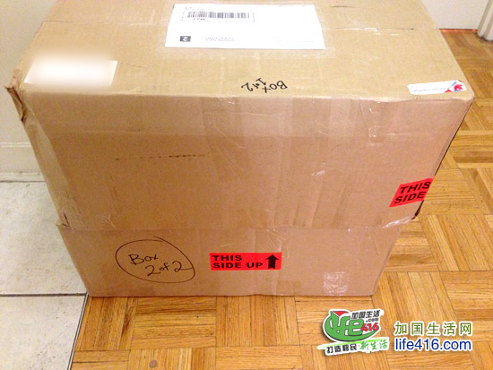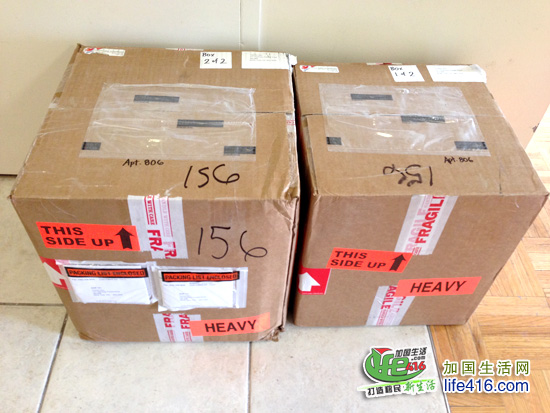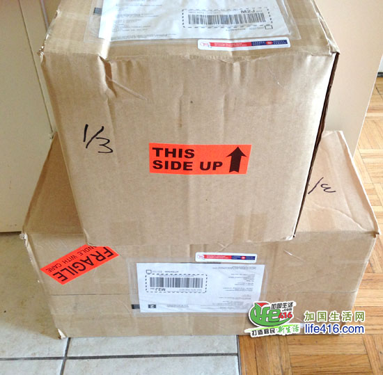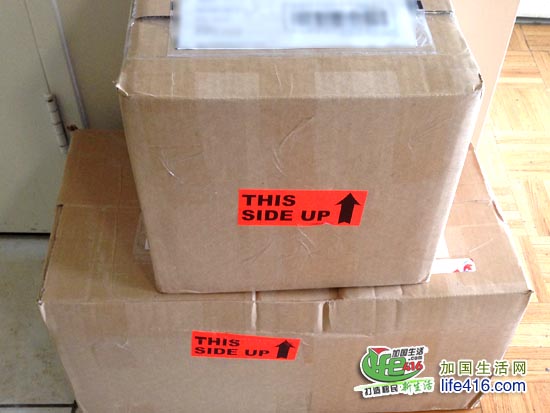这次由于有几个姐妹是从别的城市来到多伦多参加拼邮的,只能在某个特定的日期内取货,所以小编和GV 那边商量能否在这个周末前寄到,结果GV 真的是做到了,不知道他们使用的什么方法寄的,反正是比以前寄的至少快了三四天哟。而且还是两个箱子同时到,不象前几天两个箱子是分开寄到的。