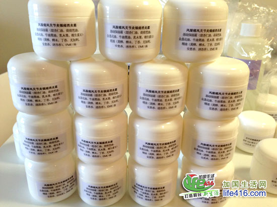 1、关节炎霜(适用于风湿性关节炎、关节积水、痛风、痛风引起的关节肿痛,其中的黄桦精油是加拿大五大湖地区的特产,原驻民就是用它来治疗关节炎的);