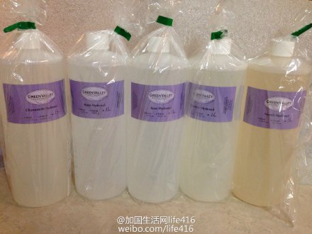 这批订迷迭香花水的尤其多,250ml、500ml、1L 的都有。迷迭香花水有紧肤嫩肤的功效,可以用它来做爽肤水,也可以把面膜纸泡开后做面膜,15分钟后纸干了再撕下,皮肤的手感好极了,象婴儿般超级嫩的皮肤手感。迷迭香的另一个功效是助长毛发,这个功效小编以前也不知道,后来姐妹们反馈小编配的乳木果眼霜还能助长眼睫毛,那个眼霜本来是奔着去细纹去黑眼圈的目的配的,助长眼睫毛绝对是意外的惊喜。小编又仔细研究了一下配方,发现原来是迷迭香助长毛发的功效起的作用。因此,想助长头发的朋友们除了订迷迭香花水外,还订姜精油,把姜精油滴到花水里,摇晃均匀后,喷在头皮发根那里,按摩头发一会儿即可。