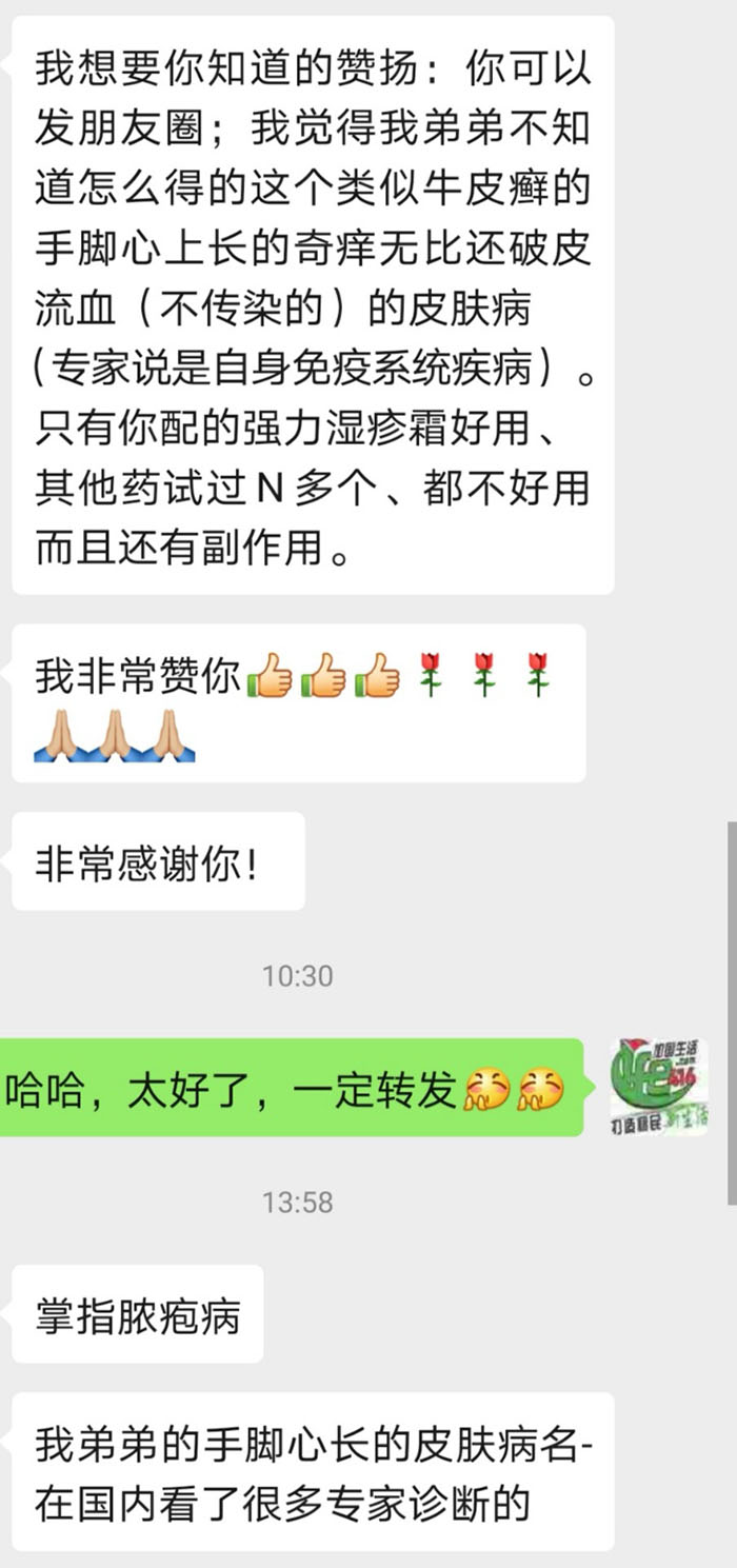 清梦思影:你好Stella,我老公用那个牛皮癣霜效果挺好,涂完之后皮肤表面的皮屑掉的很快,颜色也淡了一些。