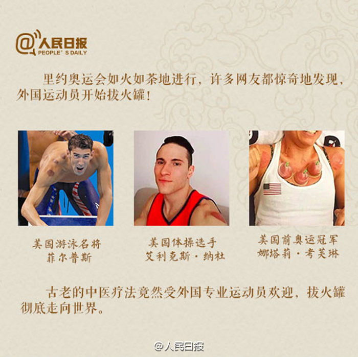 里约奥运,中式拔罐意外地火了!包括菲尔普斯在内的很多外国运动员都开始拔罐。拔罐是古老的中医疗法,有散寒祛湿、通络行气、活血化瘀的疗效。什么疾病适合拔罐?罐印颜色说明什么问题?家中拔罐有哪些注意事项?……了解来自中国的神奇力量!