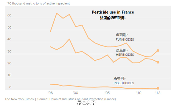 没有使用转基因技术的法国,1996年至2013年间,杀虫剂和杀菌剂使用量降低了65%,除草剂使用量减少了36%。