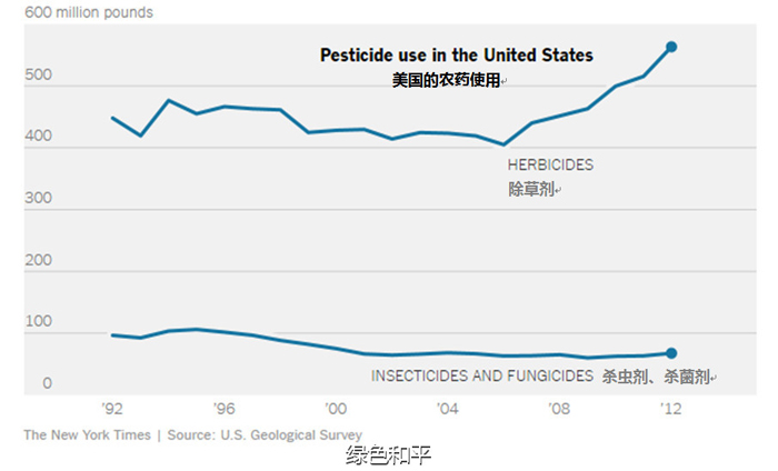 在种植转基因作物后,美国除草剂使用量增长迅速,特别是草甘膦。通过售卖和抗除草剂作物配套使用的除草剂,给孟山都和先正达这样的农化巨头带来了双重利润,过去的15年间,这两家公司的利润增长了6倍之多。