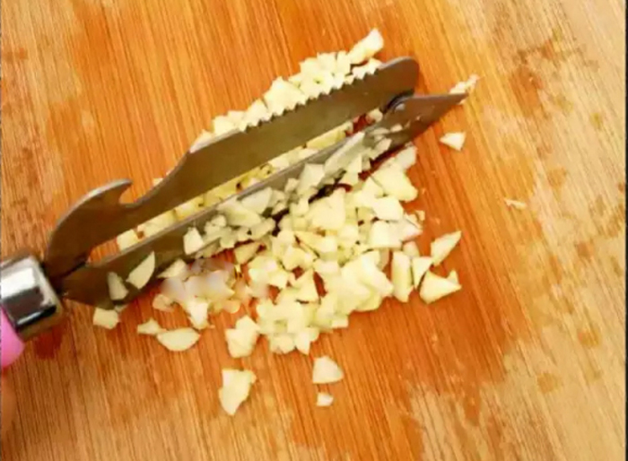 1、用刀把大蒜拍碎,然后剁碎,如果切成薄片也是可以的。