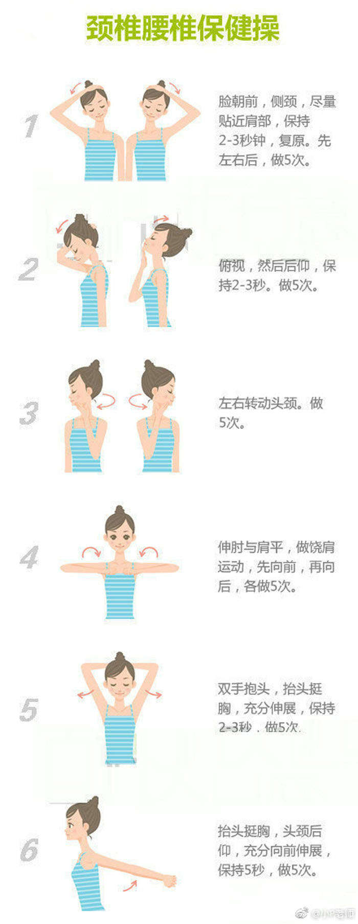 办公室一族们,快节奏的工作也许会令你无暇顾及逐渐走形的身体,你可能会抱着侥幸的心理借助衣服的掩饰,将自身缺点瞒天过海。但如果你摊上了健康问题,哪怕你一掷千金买最贵的化妆品、护肤品、服饰都难以掩饰哦。赶紧利用工作的间隙活动一下疲劳的身体吧!