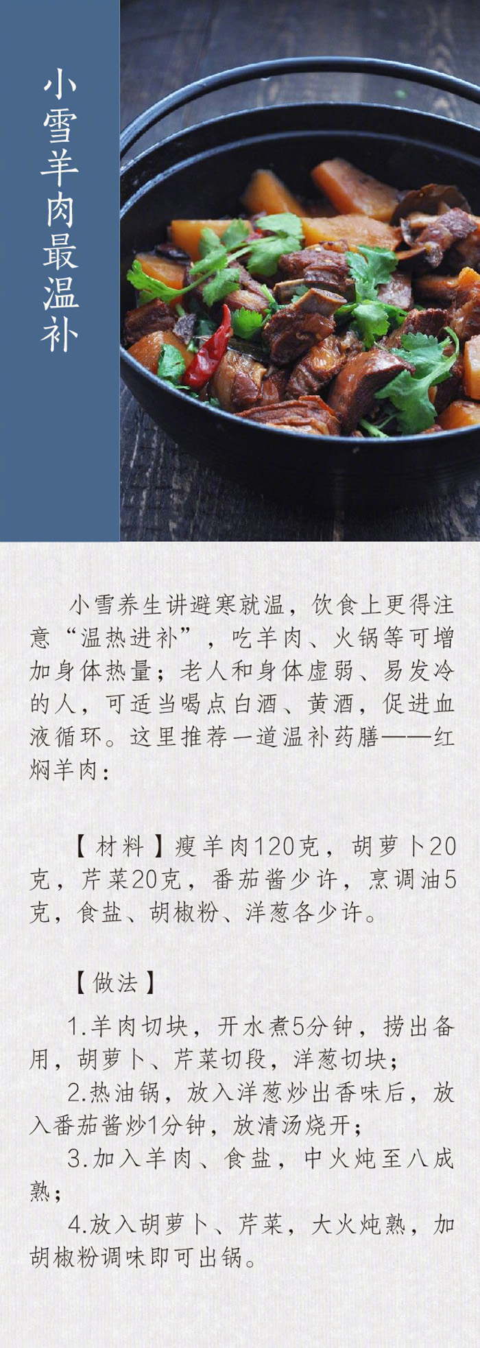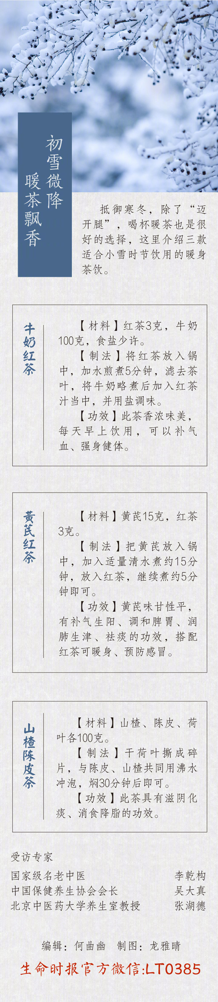 11月22日迎来小雪节气,意味着冬季降雪正式拉开帷幕。古人将小雪分“三候”:一候虹藏不见;二候天气上升地气下降;三候闭塞而成冬。即自然界阳气上升,地中阴气下降,万物失去生机,天地闭塞转入严冬。越冷越要懂养生。
