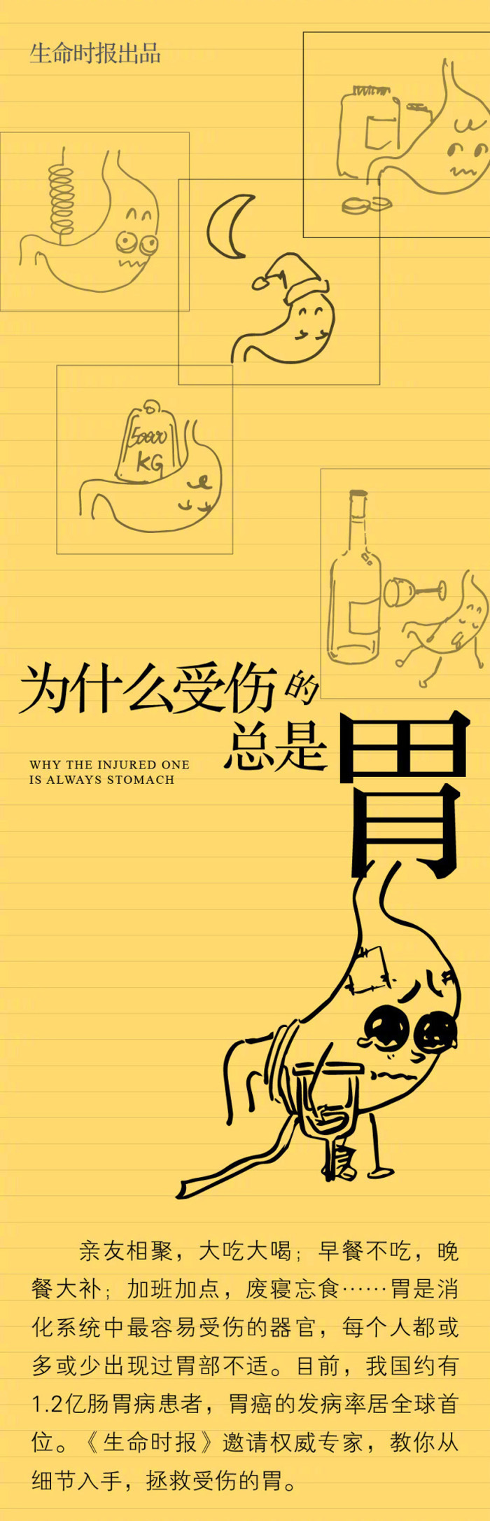 亲友相聚,大吃大喝;早餐不吃,晚餐大补;加班加点,废寝忘食……胃是消化系统中最容易受伤的器官,每个人都或多或少出现过胃部不适。目前,我国约有1.2亿肠胃病患者,胃癌的发病率居全球首位。生命君邀请权威专家,教你从细节入手,拯救受伤的胃。