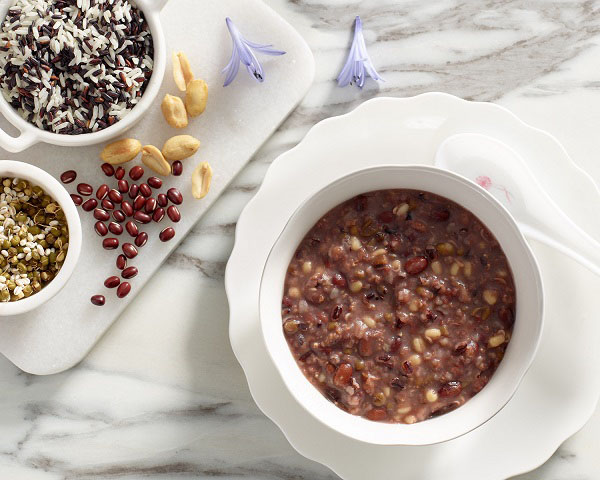 煮粥煮出新花样。以上这一款由美国稻米协会(USA Rice)准备的营养八宝粥加入了绿豆芽和提供抗氧化剂的黑粳米。红枣带来自然的甜味,烤花生又带来另一种风味。这款平均每份含72克碳水化合物以及15克蛋白质但仅含370卡路里以及3克脂肪的养生美点,冷、热食皆宜。更多详情请浏览http://riceinfo.com/recipes/。