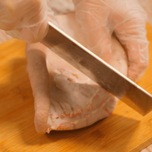 3、内膜外翻,放入5、60度的水中,加1勺料酒汆烫一下;