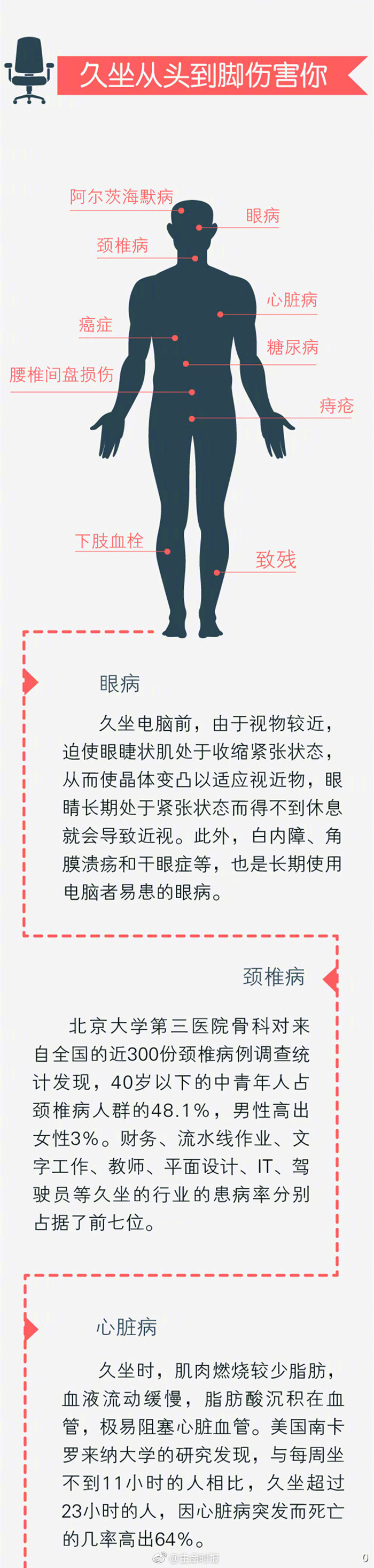 上班8小时坐着,吃饭坐着,聊天坐着,回家看电视坐着……不知不觉,你已经成为久坐族中的一员。久坐带来众多健康问题,如颈部僵硬、腰背酸痛,甚至会缩短寿命。《生命时报》采访权威专家,送上自救指南,助你彻底告别“椅子病”。