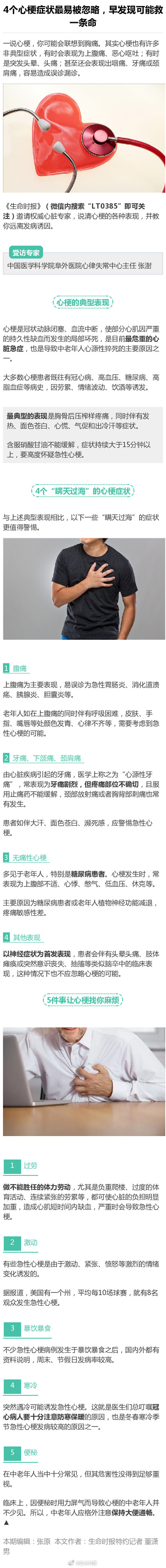 一说心梗,你可能会联想到胸痛。其实心梗也有许多非典型症状,有时会表现为上腹痛、恶心呕吐;有时是突发头晕、头痛;甚至还会表现出咽痛、牙痛或颈肩痛,容易造成误诊漏诊。《生命时报》邀请心脏专家,说清心梗的各种表现,教你远离发病诱因。