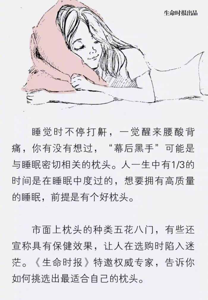 睡觉时不停打鼾,一觉醒来腰酸背痛,你有没有想过,“幕后黑手”可能是与睡眠密切相关的枕头。人一生中有1/3的时间是在睡眠中度过的,想要拥有高质量的睡眠,前提是有个好枕头。教你如何挑选出最适合自己的枕头。