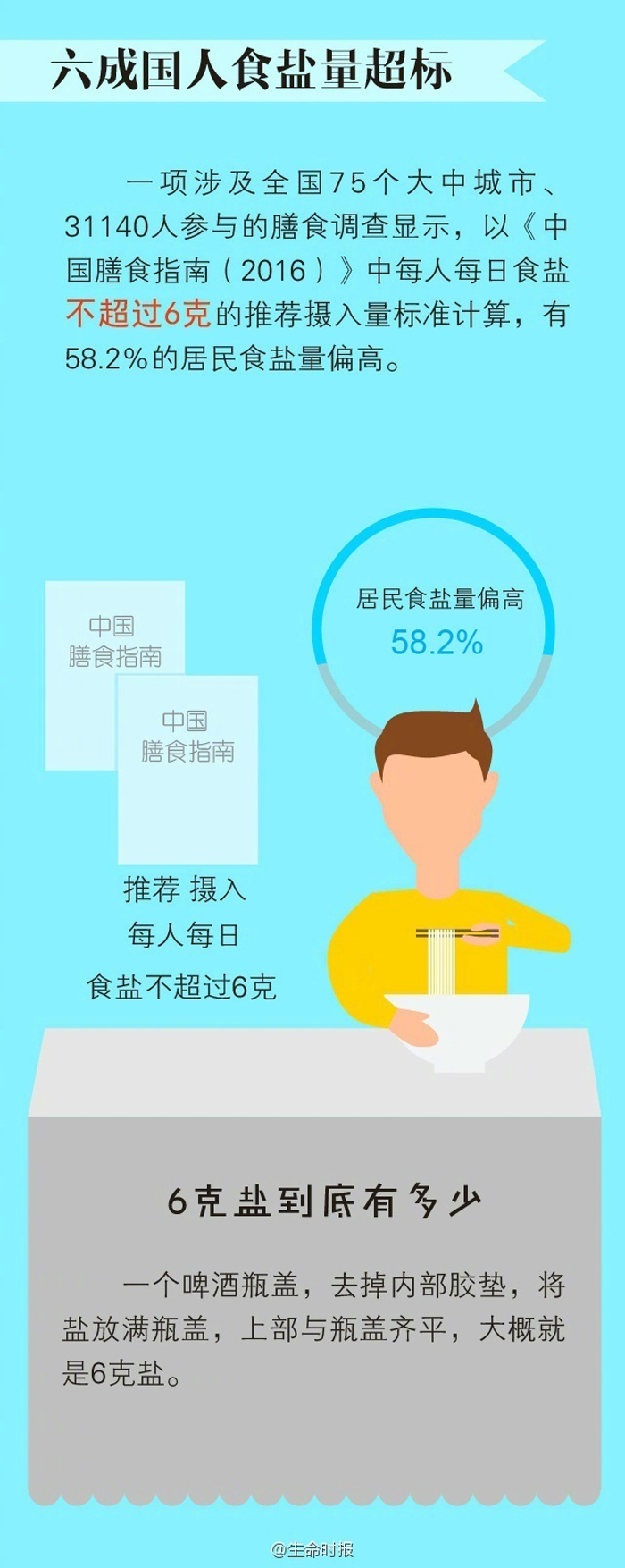 吃盐太多有害健康,这个道理很多人知道。吃盐多可能诱发高血压、水肿、心脏疾病…但作为百味之首,盐是人们饮食中必不可少的调味品。每天应吃多少盐?如何科学减盐?《生命时报》特邀专家解答,让你不再“盐”多必失。