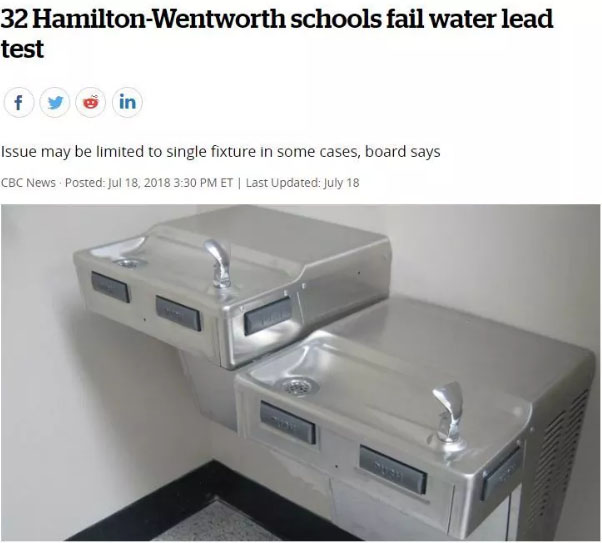 哈密尔顿的学校水源经过测试,饮用水中铅量超标,不符合引用标准,学校的水这么喝也是醉了…