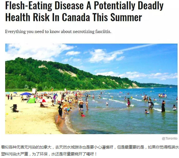看似各种无害无污染的加拿大,去天然水域游泳也是要小心谨慎呀,但是最重要的是,如果你觉得瓶装水塑料污染太严重,为了环保,水还是尽量要烧开了喝呀!