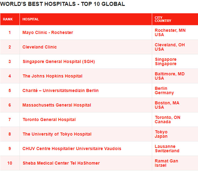 这项排名,是通过在线调查完成的,调查对象包括数万名医生、医院经理和其他医疗专业人士。参与角逐的医院必须至少有100张住院病床,并且对全国的每一家医院都进行了评分。该调查的评估时间为2018年10月至2019年1月,基于三个数据来源:医院同行的推荐、患者的体验以及医疗关键绩效指标(治疗质量和卫生数据)。