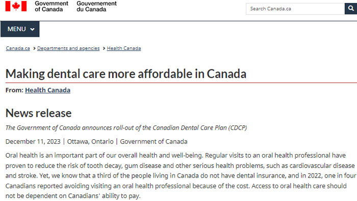 【加国生活网编译报道】加拿大联邦政府于2023年12月11日公布了最新的联邦牙科保险计划(The Canadian Dental Care Plan,简称CDCP),这是一项价值 130 亿加元的保险计划,从 2024 年起逐步推出,为达到一定收入门槛的人支付常规牙科费用。CDCP申请最早将于下周开始,预计将会有900万加拿大人受惠,首批加入该计划的群体可于明年 5 月起享用服务。