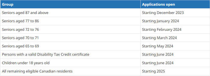 —— 从2023年12月开始,将接受87岁以上老人提交的申请,2024年1月扩大到77岁至86岁,2024年2月将扩大到72岁至76岁,2024年3月将扩大到70岁至71岁。符合资格的这些年龄组的个人,将收到邀请申请的信件,并说明如何验证他们的资格,并通过电话申请。