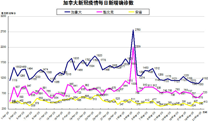 5月3日:魁省单日新增确诊爆增2千多 加拿大总数至59474