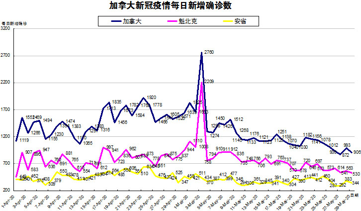 5月3日:魁省单日新增确诊爆增2千多 加拿大总数至59474