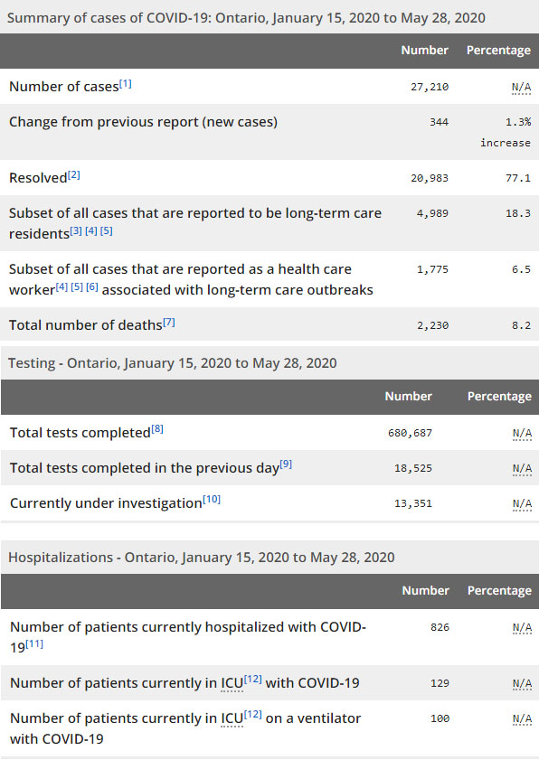 5月27日:安省紧急命令延长至6月9日 多伦多发布新冠疫情报告和地图