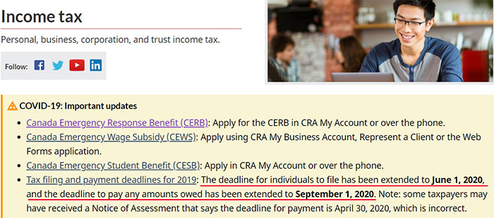 —— 提醒还未申报个人所得税的朋友们,6月1日是申报的最后期限。每年个人报税的最后期限是4月30日,今年由于新冠疫情影响,加拿大税局CRA延长了报税时间,将截止日从4月30日延长至6月1日。与此同时,税局也把纳税人补交税款的时间放宽到9月1日,因此在此之前付款,不会受罚,也不会收取欠款利息。