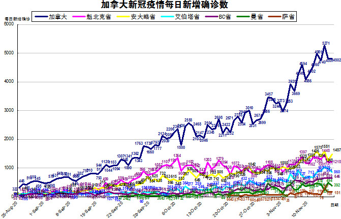 11月14日:加拿大四省单日新增确诊病例同时创自疫情以来最高记录