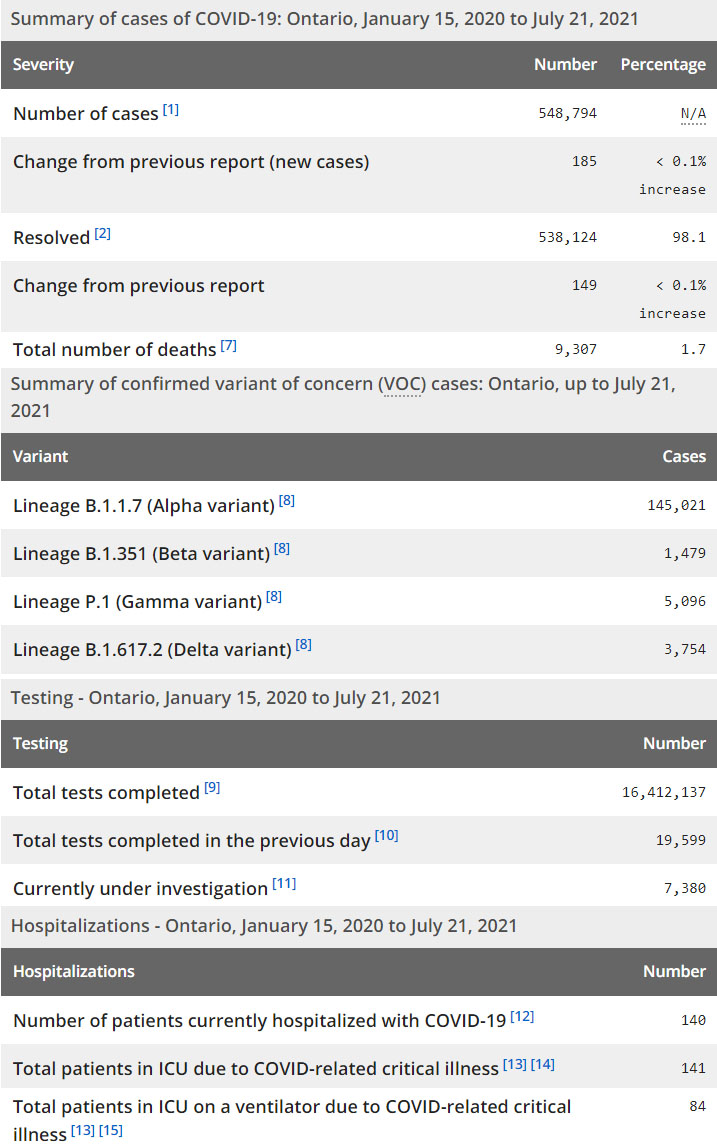 7月16日:安省每日新增病例连续一周低于200例 Grey Bruce区Delta变异病毒病例激增