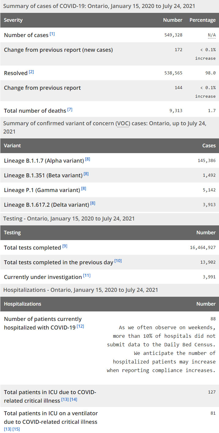 7月16日:安省每日新增病例连续一周低于200例 Grey Bruce区Delta变异病毒病例激增