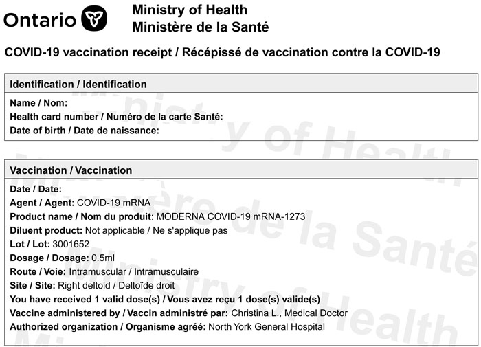— 安省接受来自安省以外司法管辖区的疫苗接种收据,前提是接种的疫苗符合安省对完全接种疫苗的定义。