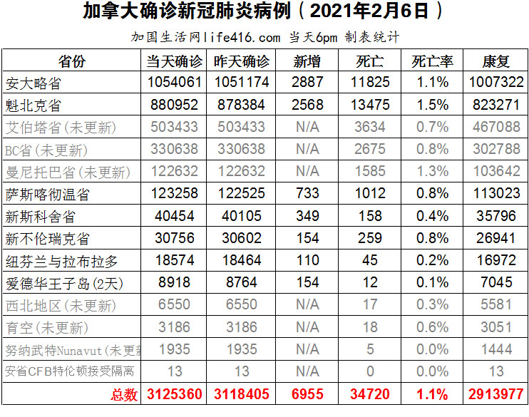 由于好多省份逢周末没有更新,加国生活网小编制作的曲线图也在周末暂停,等周一发布更新数据后,小编会根据最新数据制作图表。