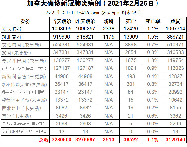 由于好多省份在本周末没有更新,加国生活网小编制作的曲线图也只能在周末暂停,等周一发布更新数据后,小编会根据最新数据制作图表。