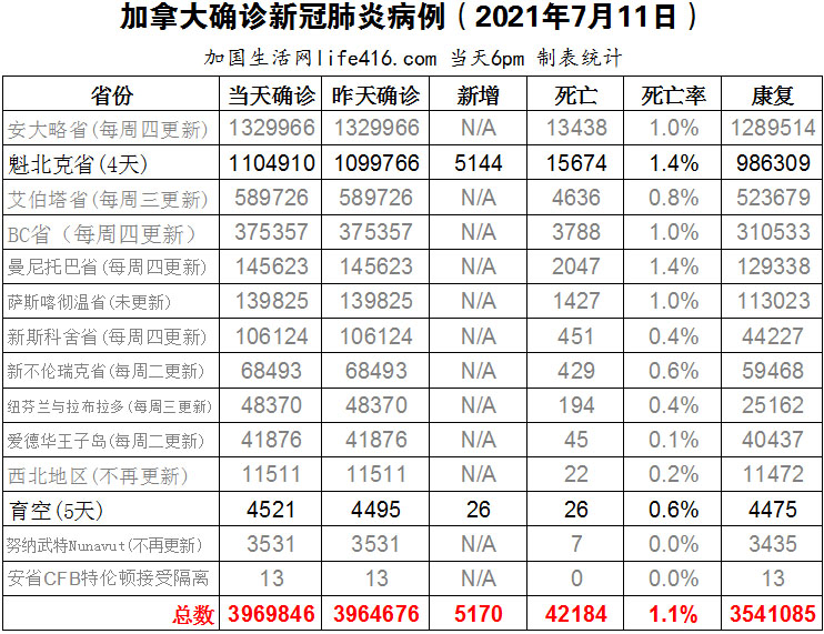 7月1日至7月3日加拿大国庆日长周末各省没有疫情数据更新报道暂停
