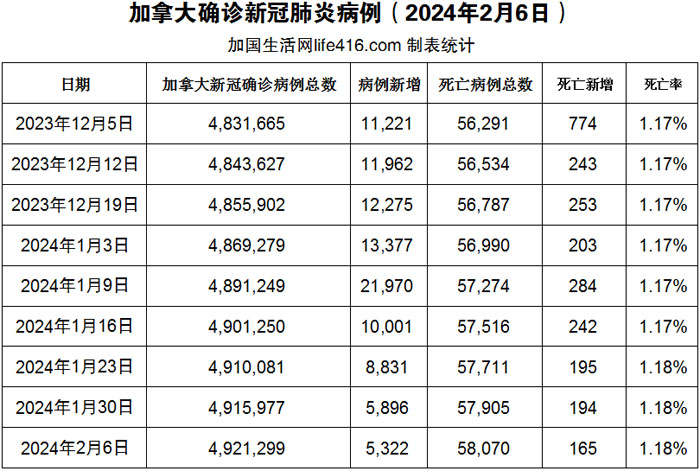 【加国生活网编译报道】截至2024年2月6日,加拿大新冠确诊病例总数为4,921,299(一周新增5,322),死亡58,070(一周新增165例)。世界卫生组织(WHO)本周宣布,去年 40 多个欧洲国家有 42,200 例麻疹病例,比 2022 年增加了 40 多倍,2022 年病例数不到 1,000 例。去年 12 月,该组织表示,欧洲地区已有20,000 多人住院治疗,至少 5 人死亡。随着欧洲麻疹病例激增,医生警告,由于全球旅行率高和疫苗接种率低,加拿大爆发麻疹疫情只是“时间问题”。加国生活网专门制作了如下统计数据表: