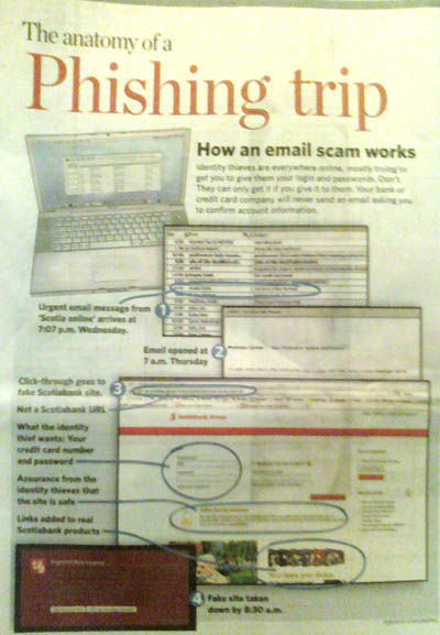 【加国生活网编译】相信大家都有类似的经历,自己的Email信箱里突然有封来自银行的信,通知你说你的网上银行的帐号密码有误或称密码被人盗用,让你尽快通过这封邮件所提供的链接去你的网上银行查看。特别是最近二周,不仅加国生活网小编的Email 信箱接连收到好几封标着“urgent”字样的Email,甚至连《Toronto Star》主流媒体的记者也收到了类似的Email。为此,他们专门写了一篇文章,提示广大民众,一定要小心这种网络钓鱼网站(Internet Phishing Scams)。