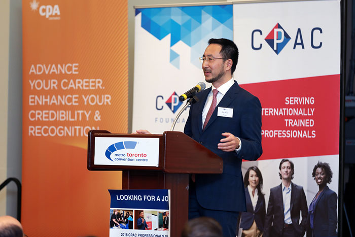 CPAC会长肖楚强先生(Eric Xiao)在开幕致辞中指出 “CPAC旨在帮助移民专业人士们的资历能在加国获得认可,并通过各类行之有效的职业培训、领导力培训和导师辅导等项目,帮助大家早日实现就业和职业发展目标。我们希望 “专业人士日” 成为您事业发展中有价值的一部分。” 安省特许会计师协会(CPA Ontario)招生总管Vicki Liederman强调:“我们坚信为新移民敞开专业领域的通道、广纳贤才是多伦多充实多元化人才储备的必要途径。”