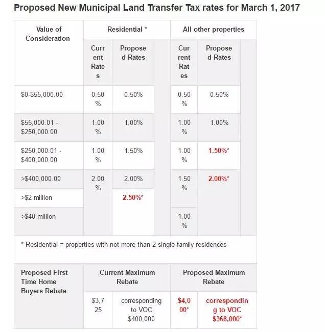 1、对价值从250,000加元到400,000加元的房产部分划分出来,土地转让税率从1%提高至1.5%。换言之,相当于加750元税。