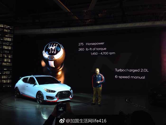 Hyundai Veloster 拥有运动轿跑车的设计,采用2.0升4缸发动机搭配六速电控自动变速器、在6,200转/分钟时提供147马力的峰值输出,最大扭矩为132磅英尺。而Veloster N则提供独特的N型前部面板和专用前部风道的格栅,可增强制动冷却效果。在外形上,独特的N设计摇臂侧门槛和双辐条星型设计的19英寸合金车轮清楚地将N车型与其他Veloster车型区分开来。Veloster N的后部采用集成式扩散器的后部筋膜设计以及高流量的双排气管。