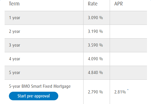 BMO固定按揭利率: